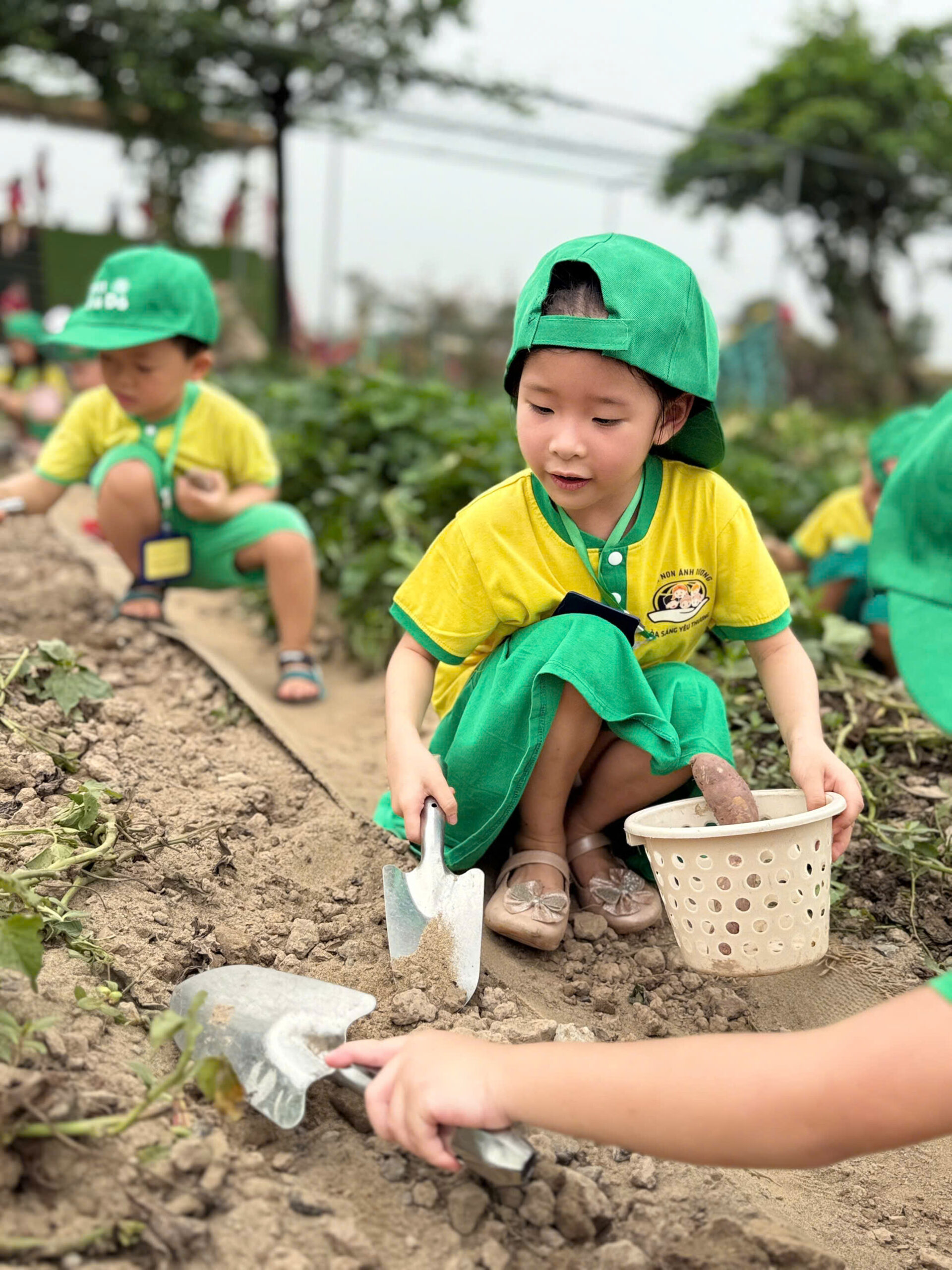 - Lấm lem để trưởng thành: Đôi bàn tay nhỏ xíu chẳng ngần ngại chạm vào đất, học cách gieo hạt, tưới cây, thu quả… Cảm giác mát rượi của đất mùn và sự diệu kỳ khi mầm xanh nhú lên giúp các con hiểu về nguồn gốc của thực phẩm và giá trị cao quí của lao động.