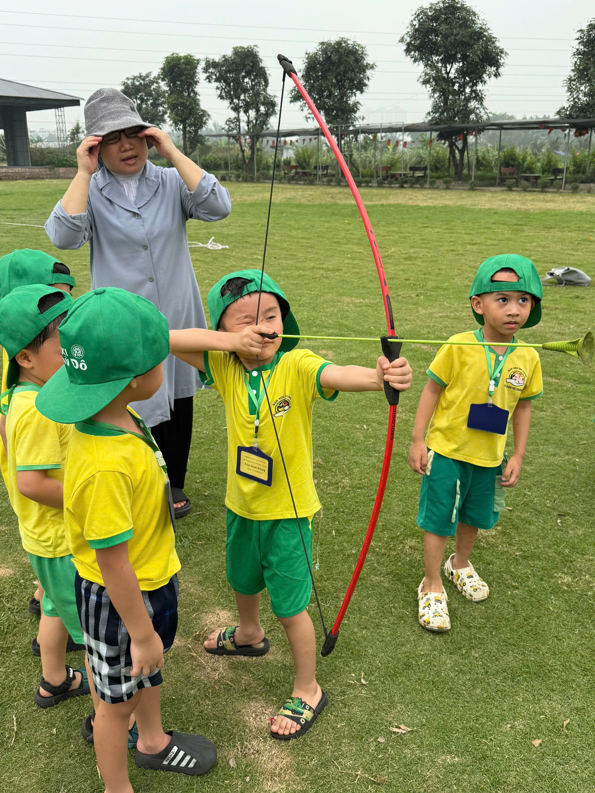 Tiếng reo hò không ngớt vang lên tại khu vực bắn cung và bóng rổ. Nếu bóng rổ rèn luyện sự năng động, nhanh nhẹn thì bắn cung lại giúp các bé học được sự kiên nhẫn, tính chính xác và khả năng tập trung cao độ.