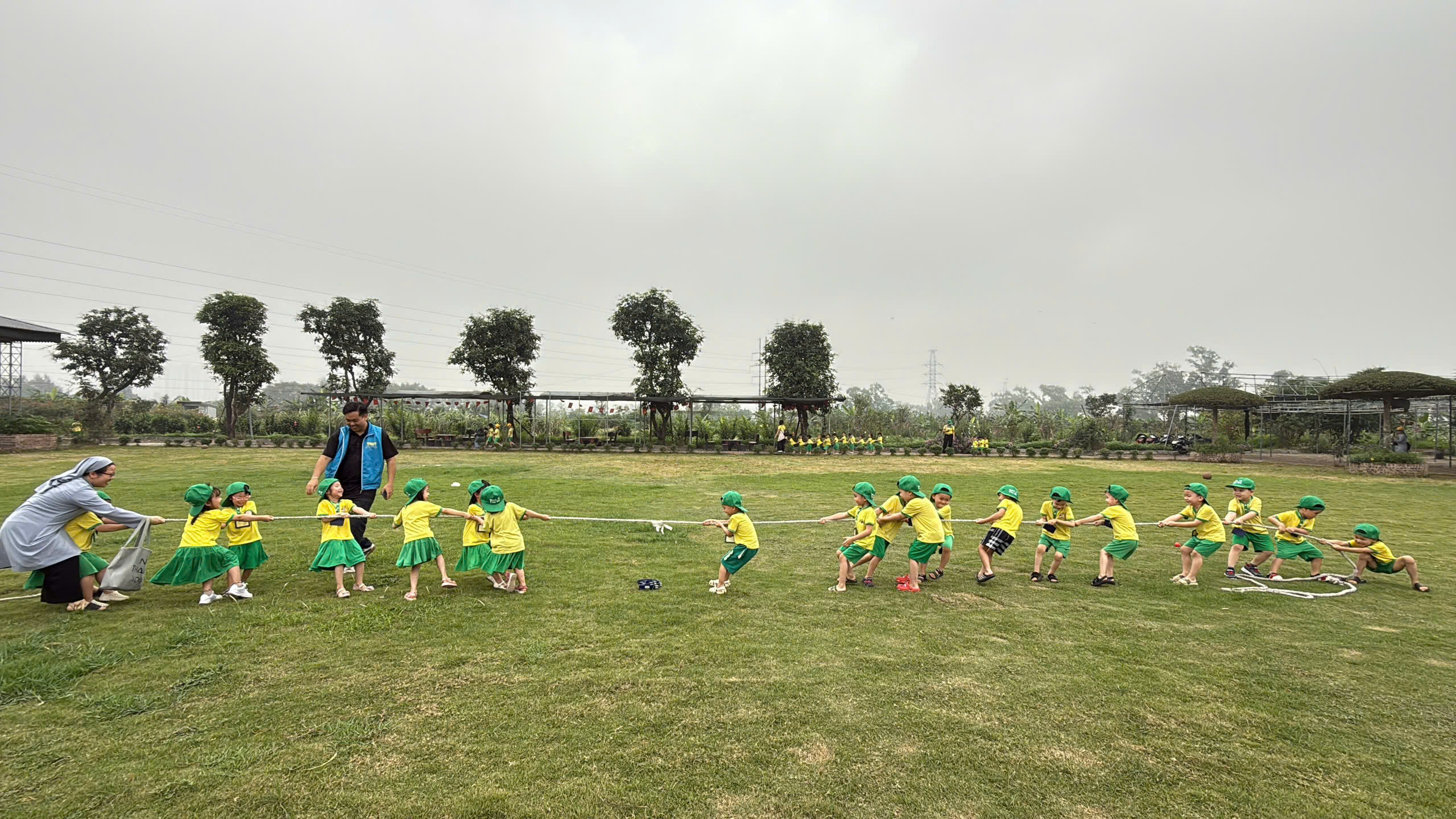 - Vận động không giới hạn: Những trò chơi dân gian: kéo co, vượt chướng ngại vật giữa không gian xanh mướt đã giúp các con rèn luyện thể chất, sự dẻo dai và tinh thần đồng đội tuyệt vời.