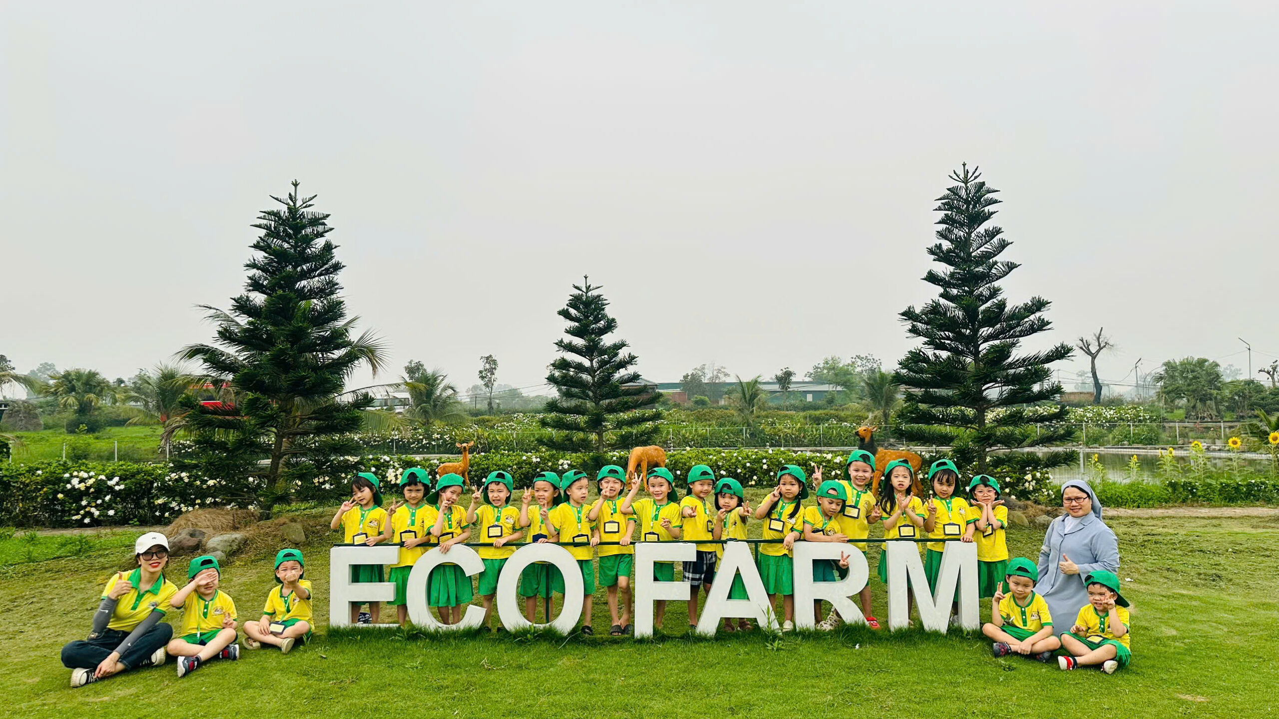 Rời xa không gian lớp học quen thuộc với phấn trắng, bảng đen và đồ chơi nhựa, các bạn nhỏ Ánh Dương đã được hít thở bầu không khí trong lành và hòa mình vào sắc xanh của cỏ cây tại Eco Farm. Ngay từ khoảnh khắc bước chân xuống xe, những đôi mắt tròn xoe đầy tò mò đã bắt đầu hành trình khám phá thế giới tự nhiên một cách chân thực nhất.