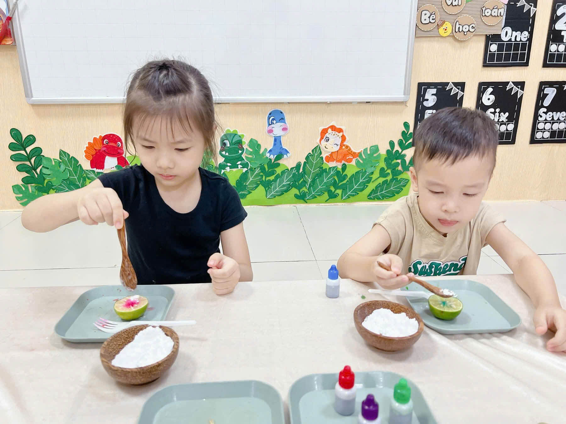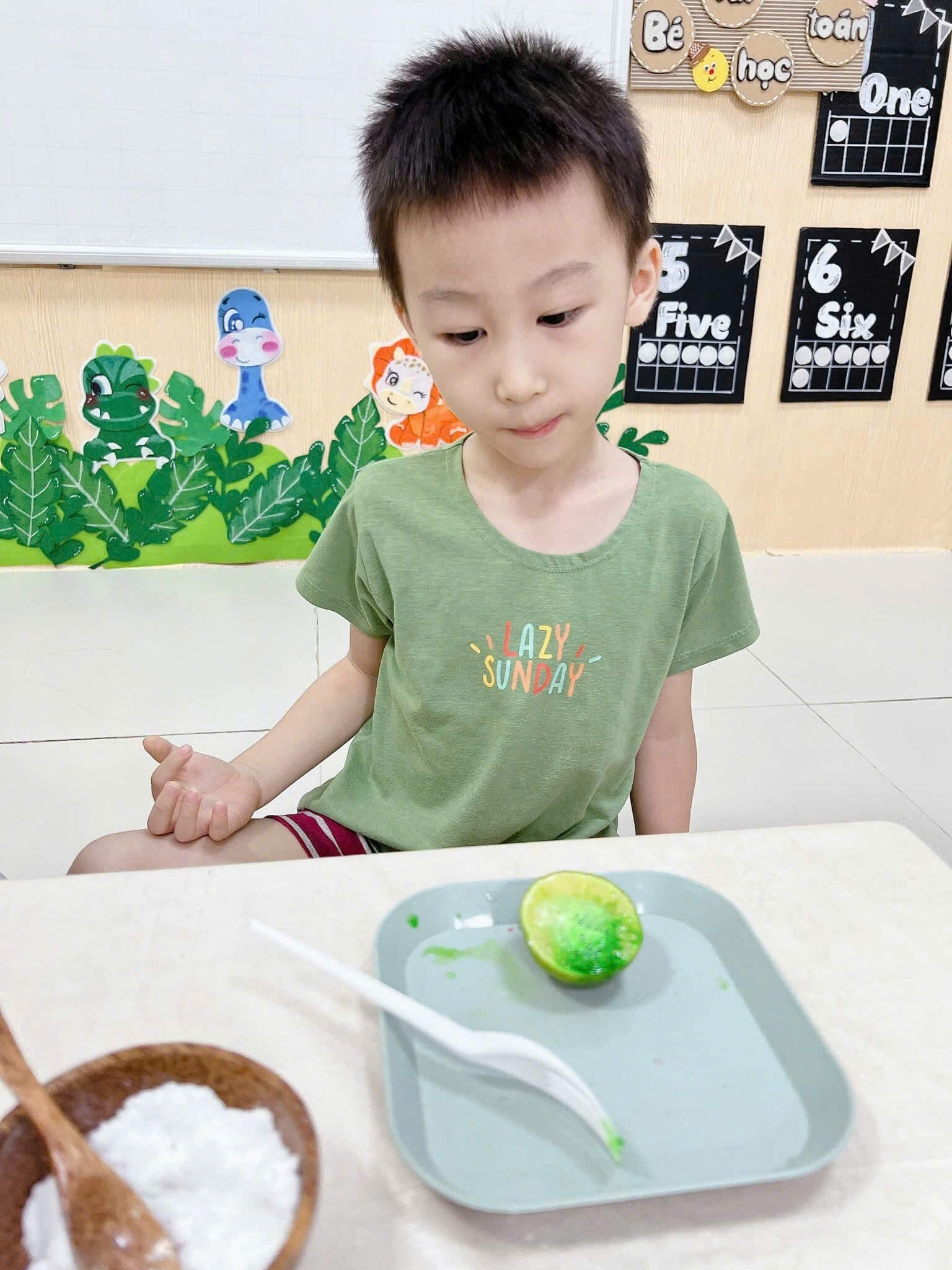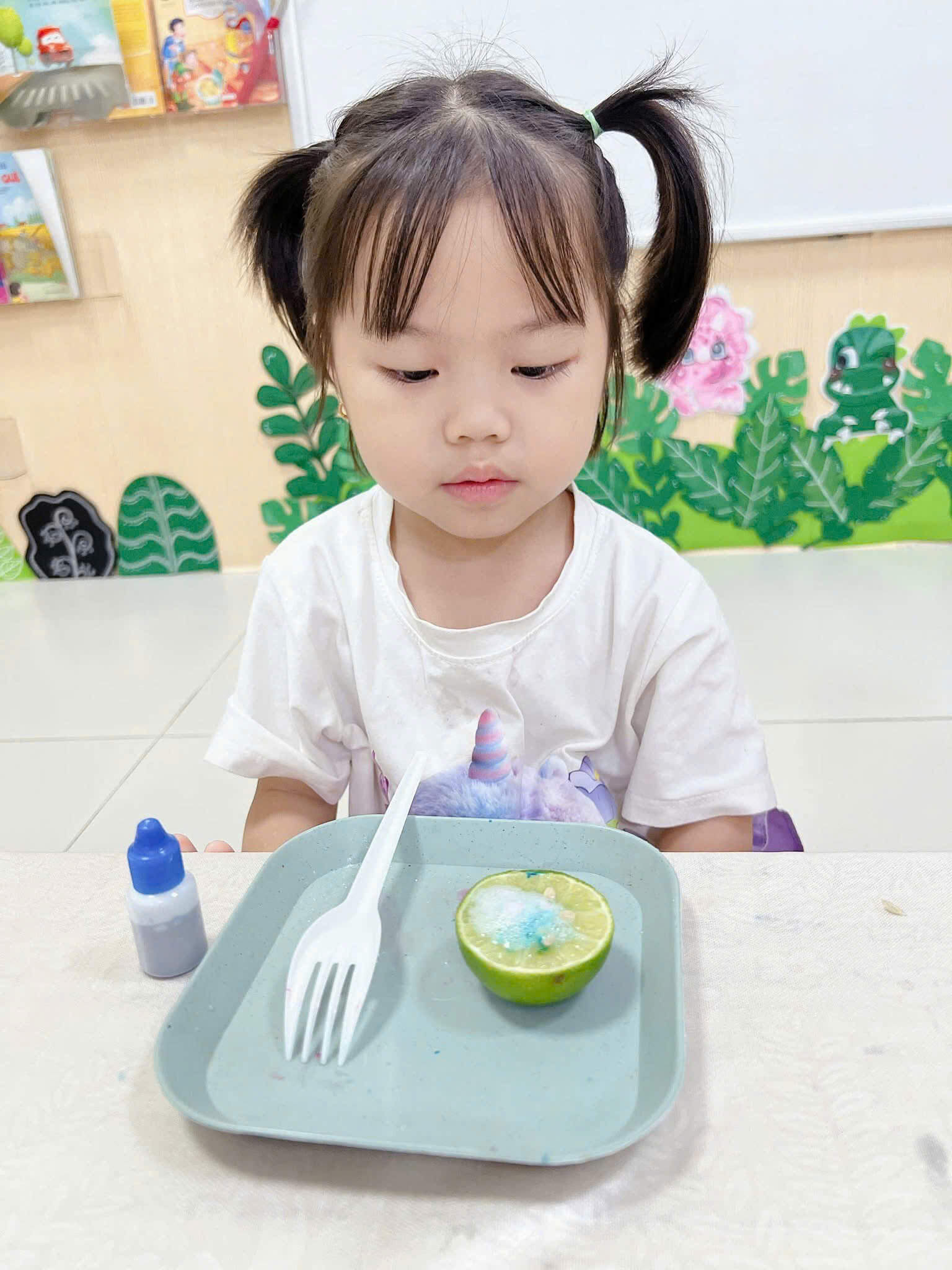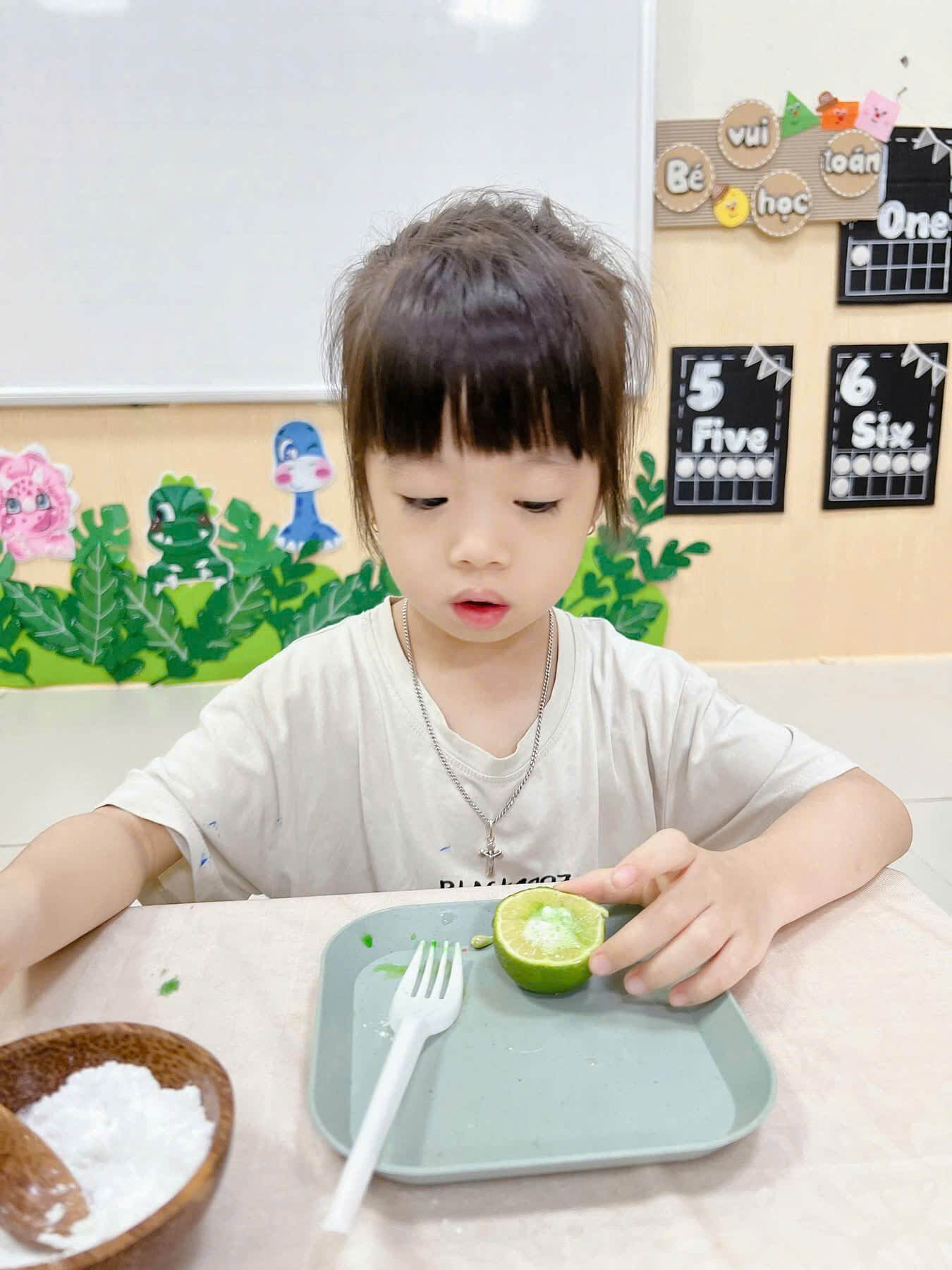 Hôm nay, các bạn nhỏ đã được tham gia một thí nghiệm vô cùng thú vị với chanh, màu nước và baking soda. Chỉ với những nguyên liệu quen thuộc, các bé đã khám phá hiện tượng sủi bọt đầy màu sắc, giống như một “trận pháo hoa tí hon” ngay trong cốc.