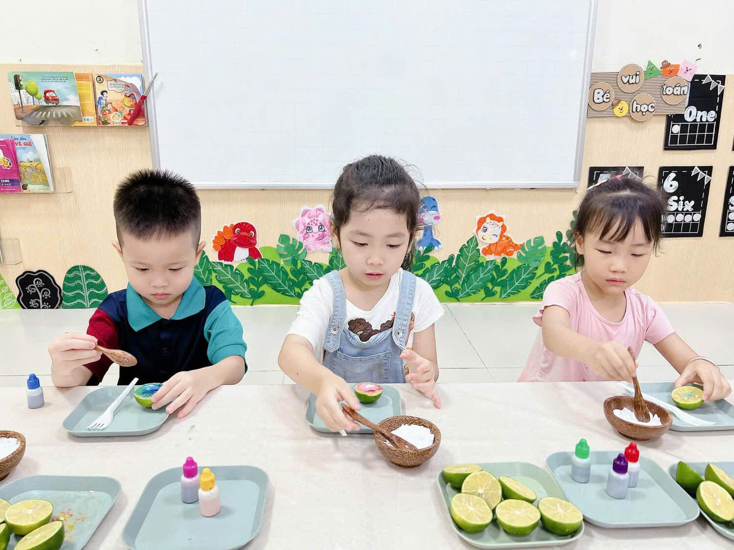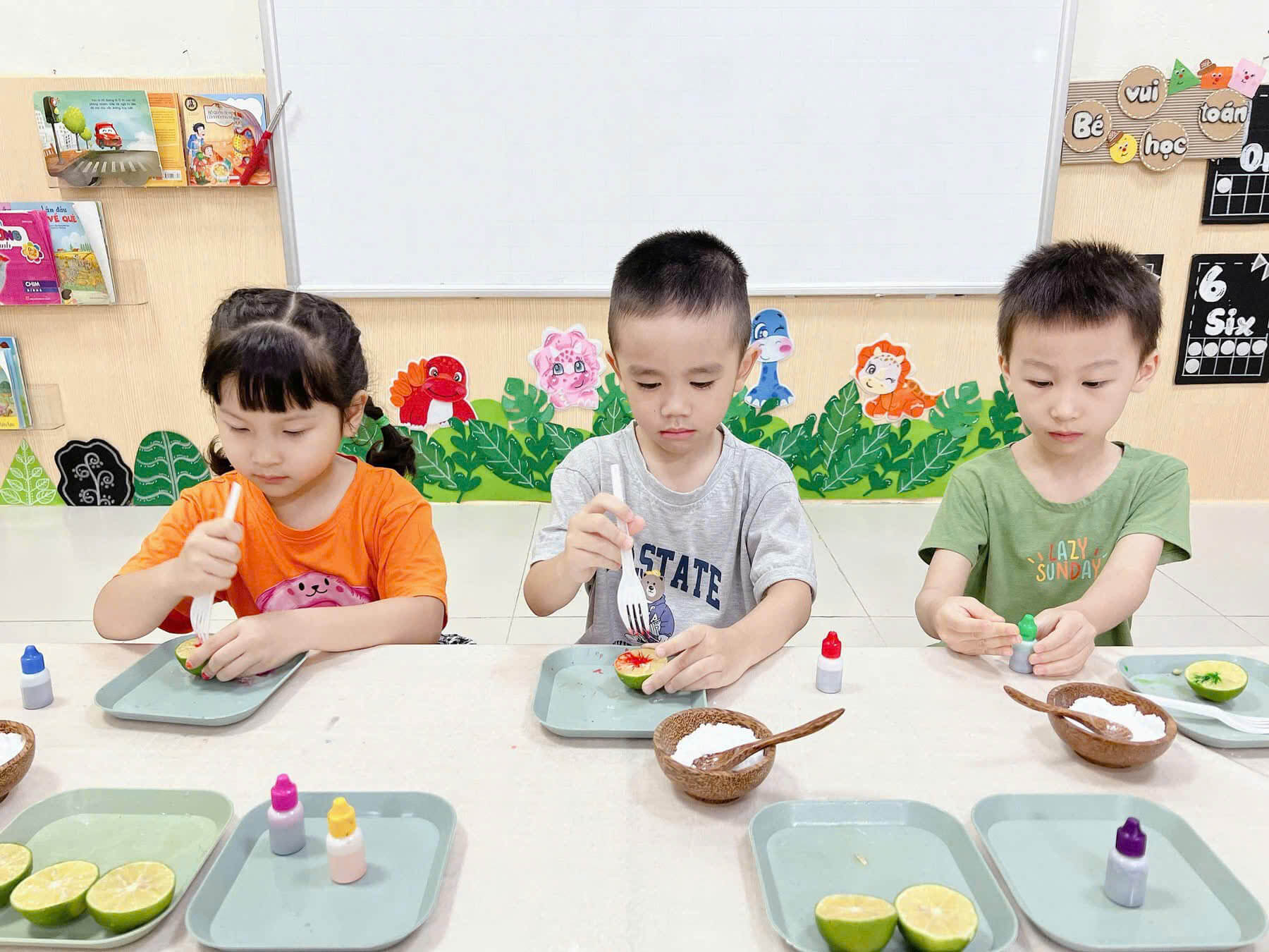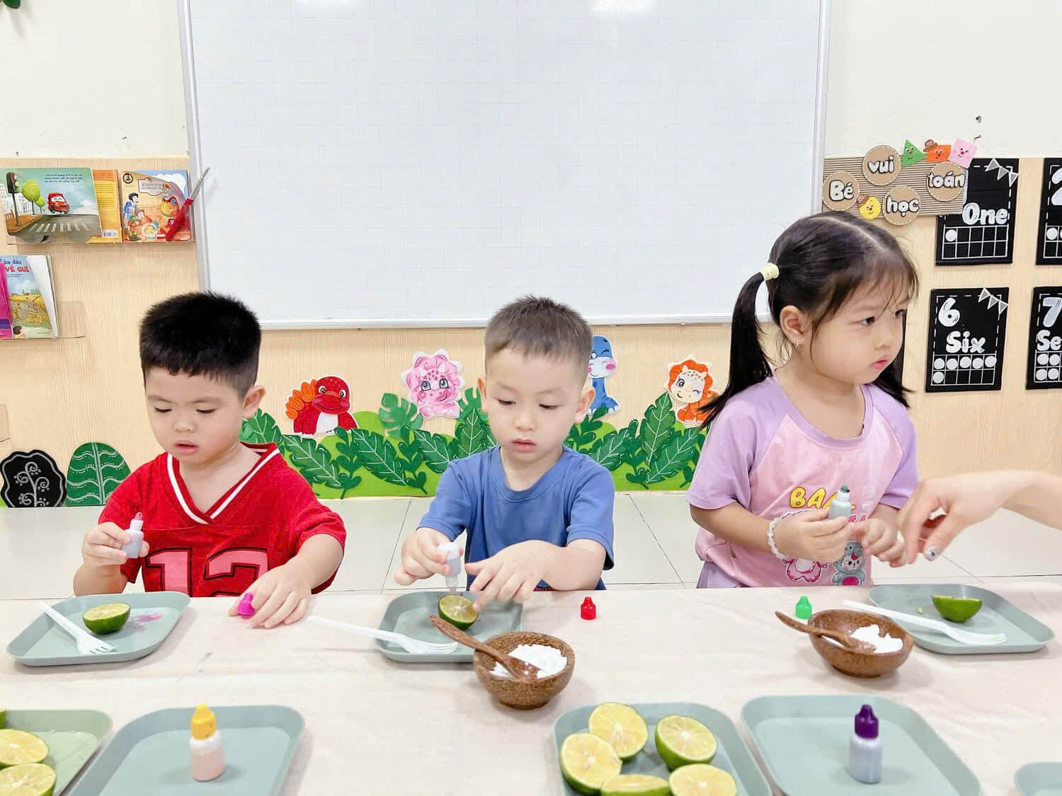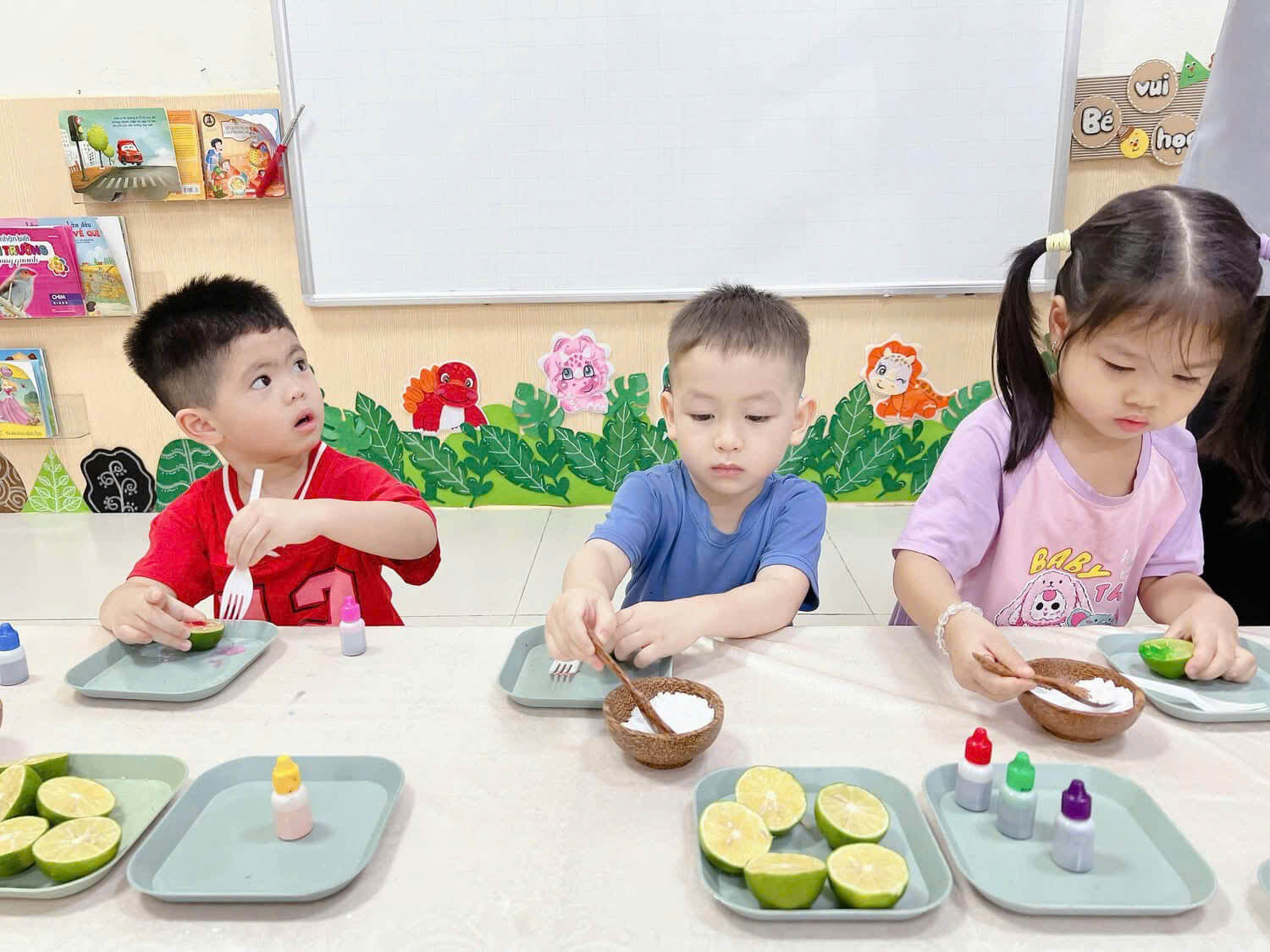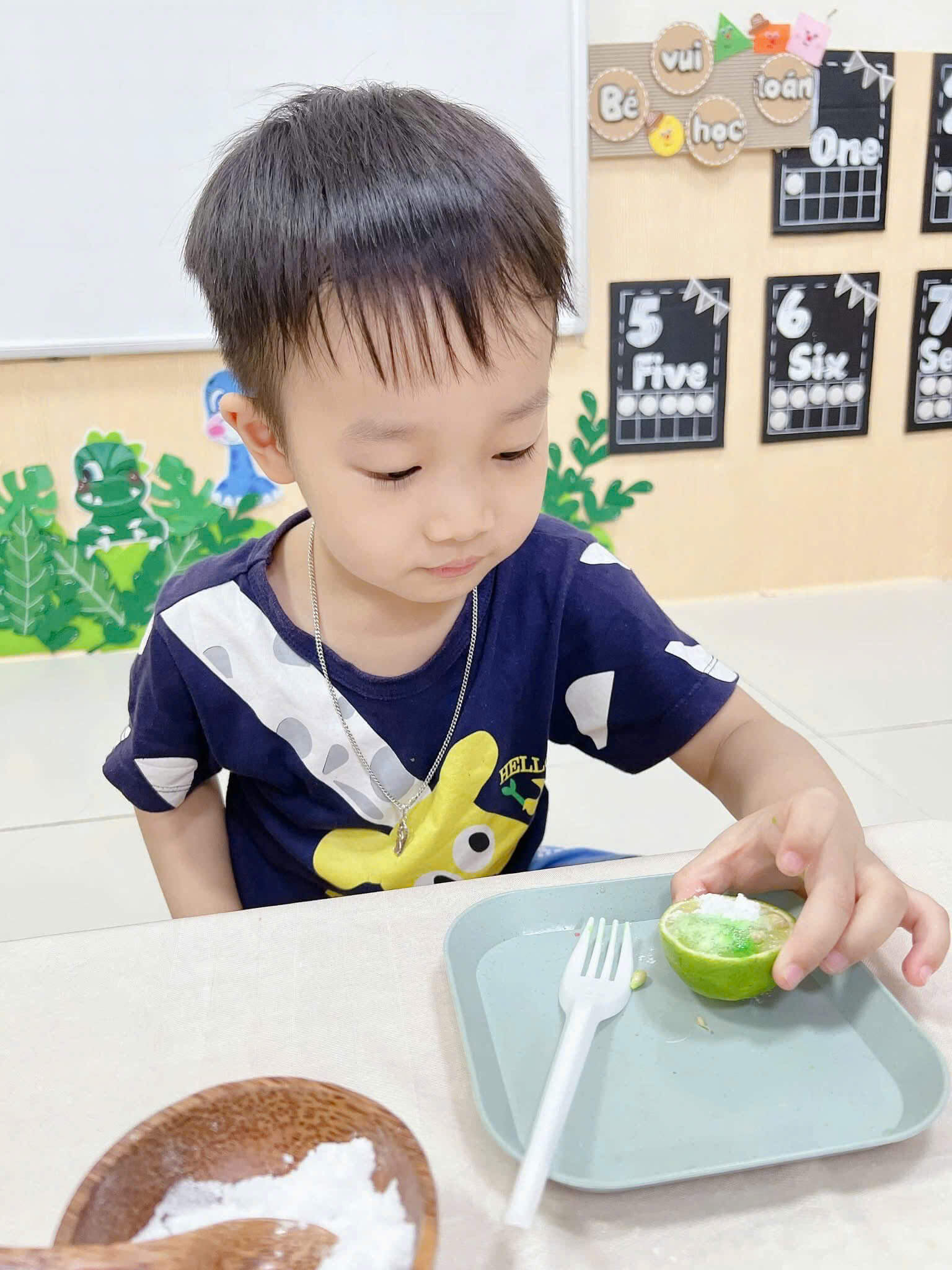 Hôm nay, các bạn nhỏ đã được tham gia một thí nghiệm vô cùng thú vị với chanh, màu nước và baking soda. Chỉ với những nguyên liệu quen thuộc, các bé đã khám phá hiện tượng sủi bọt đầy màu sắc, giống như một “trận pháo hoa tí hon” ngay trong cốc.