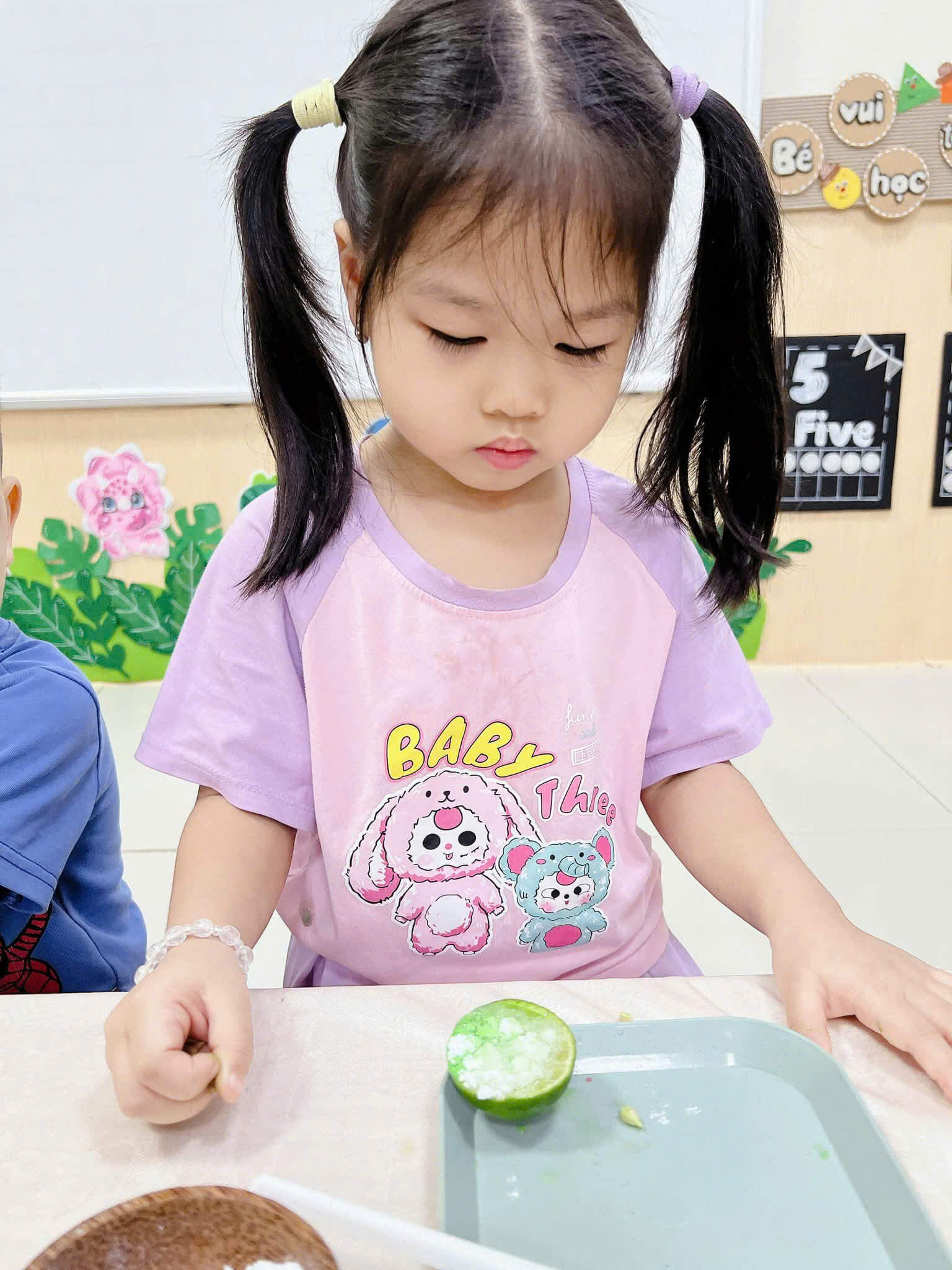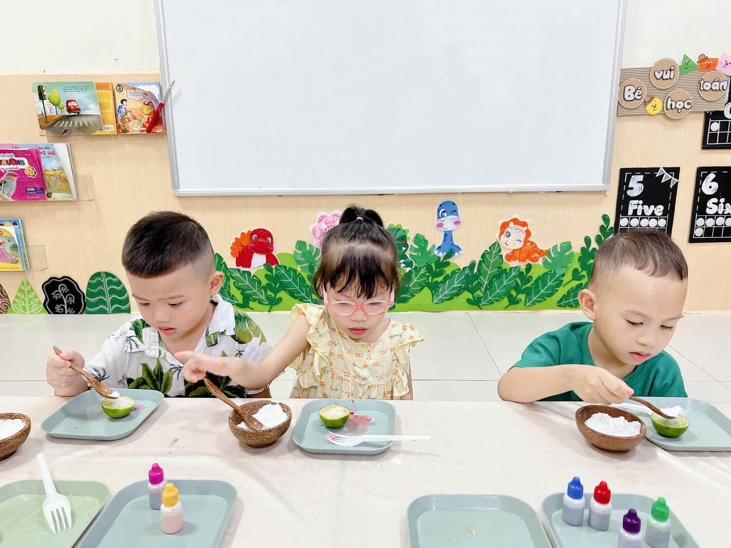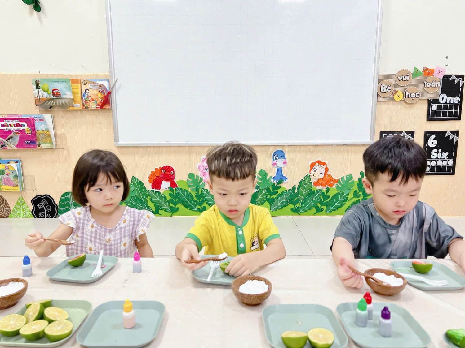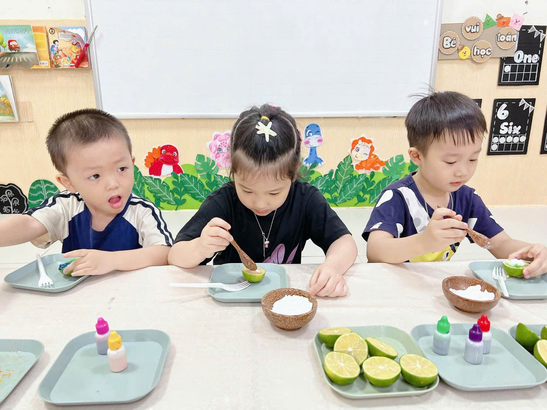 Hôm nay, các bạn nhỏ đã được tham gia một thí nghiệm vô cùng thú vị với chanh, màu nước và baking soda. Chỉ với những nguyên liệu quen thuộc, các bé đã khám phá hiện tượng sủi bọt đầy màu sắc, giống như một “trận pháo hoa tí hon” ngay trong cốc.