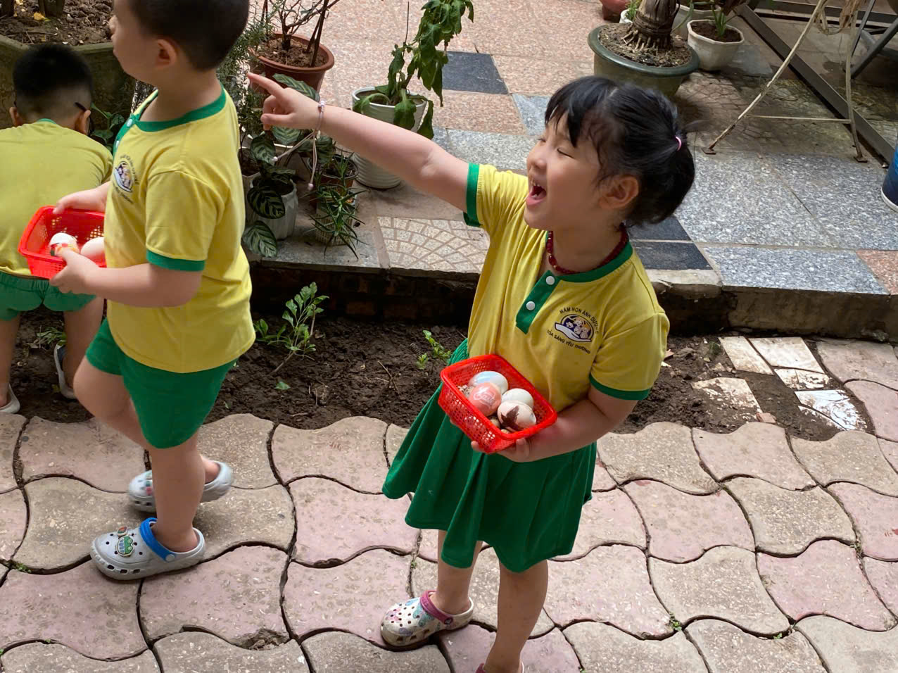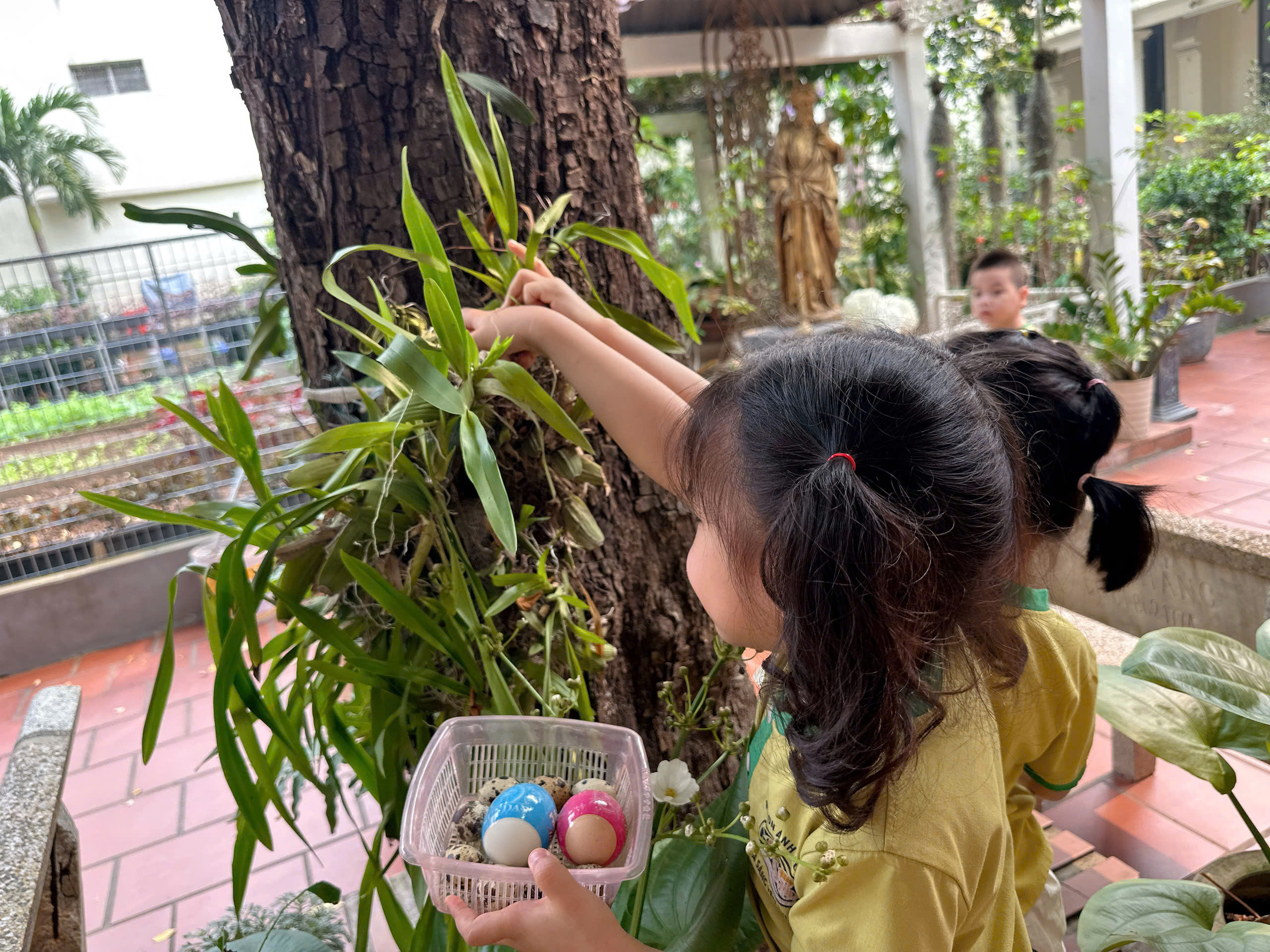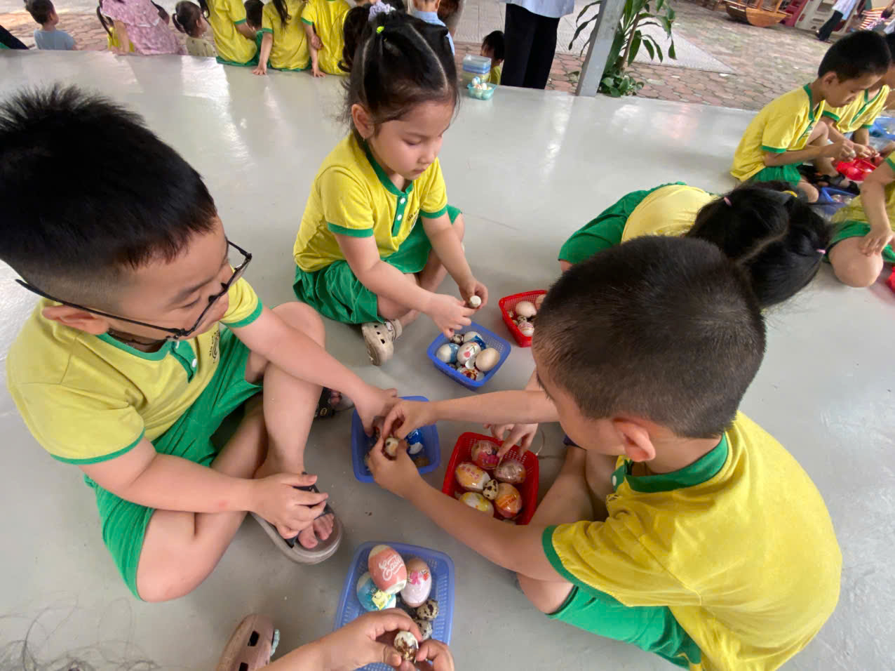 - Kỹ năng làm việc nhóm: Các bạn nhỏ hò reo, chỉ dẫn cho nhau chỗ giấu trứng, tạo nên một bầu không khí gắn kết, yêu thương.