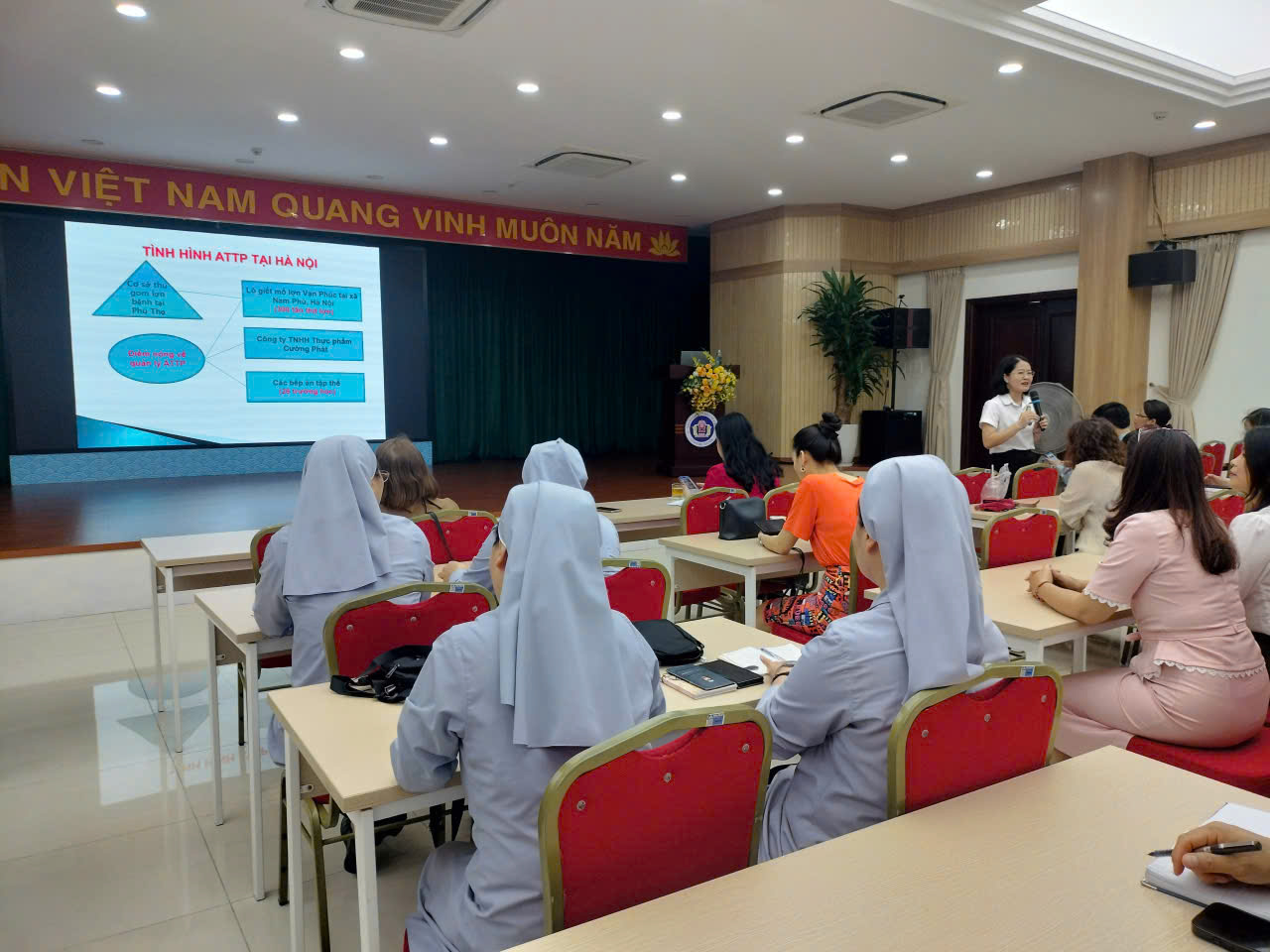 Thấu hiểu nỗi lo ấy, vừa qua, đội ngũ giáo viên và nhân viên trường Mầm non Ánh Dương đã nghiêm túc và tích cực tham gia buổi tập huấn “Phổ biến kiến thức và thực hành an toàn thực phẩm” do UBND phường Cửa Nam tổ chức. Đây không chỉ là một khóa học nghiệp vụ, mà là lời cam kết của chúng tôi về sự an toàn tuyệt đối cho các con.